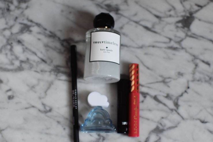 Then I decided to treat myself. I went to Ulta looking for my usual eyeliner, but I also found a perfume that I couldn’t pass up. It is called Kate Spade Truly Timeless, and it is light and kind of smells like fresh laundry mixed with flowers. I don’t wear perfume often, so I don’t really buy it, but after I tried it on in the store, I couldn’t stop smelling myself (in a good way). I also bought a lipstick, and got some free perfume samples and a tiny mascara.