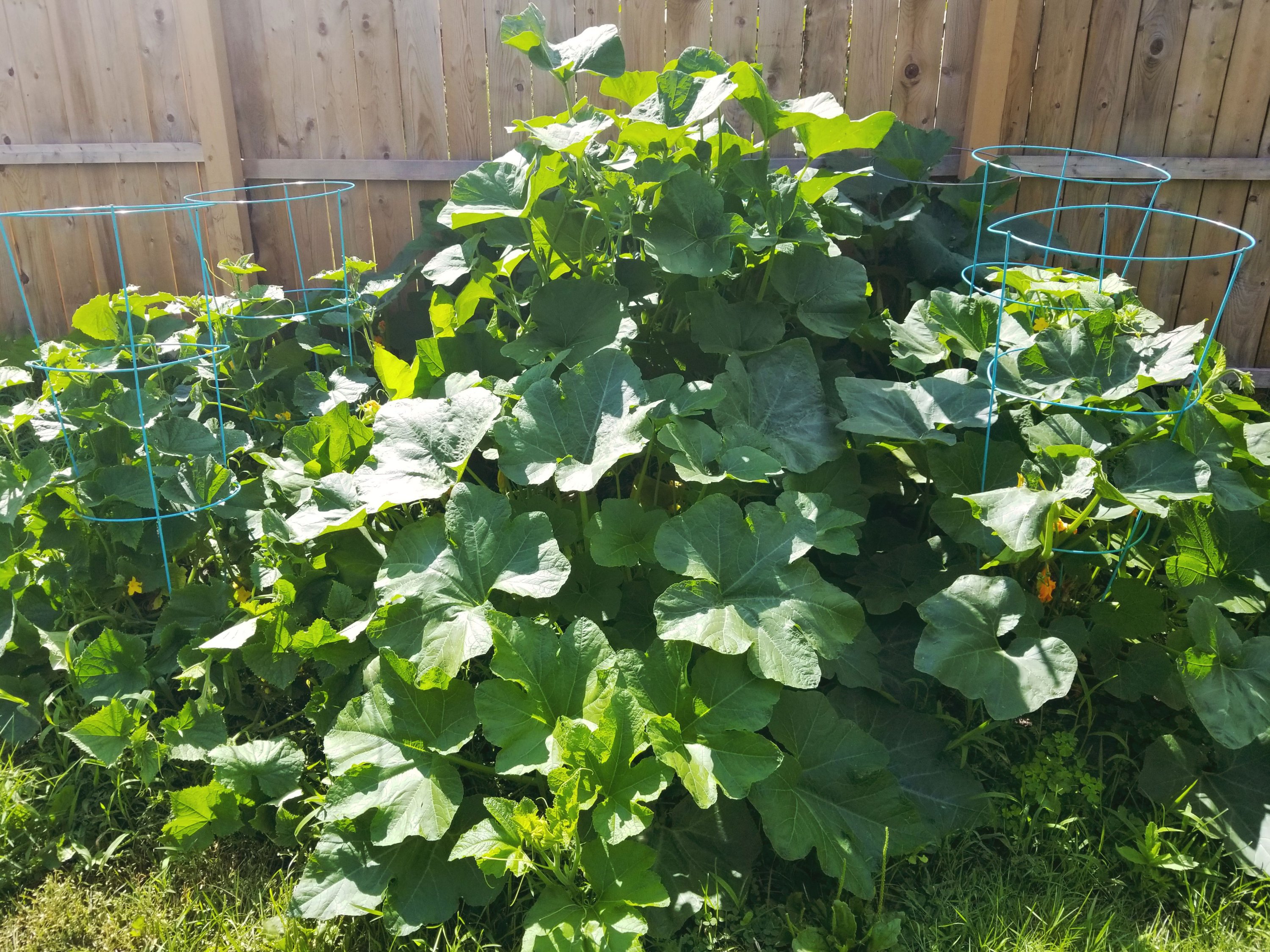Squash and cucumber plants in August 2018.