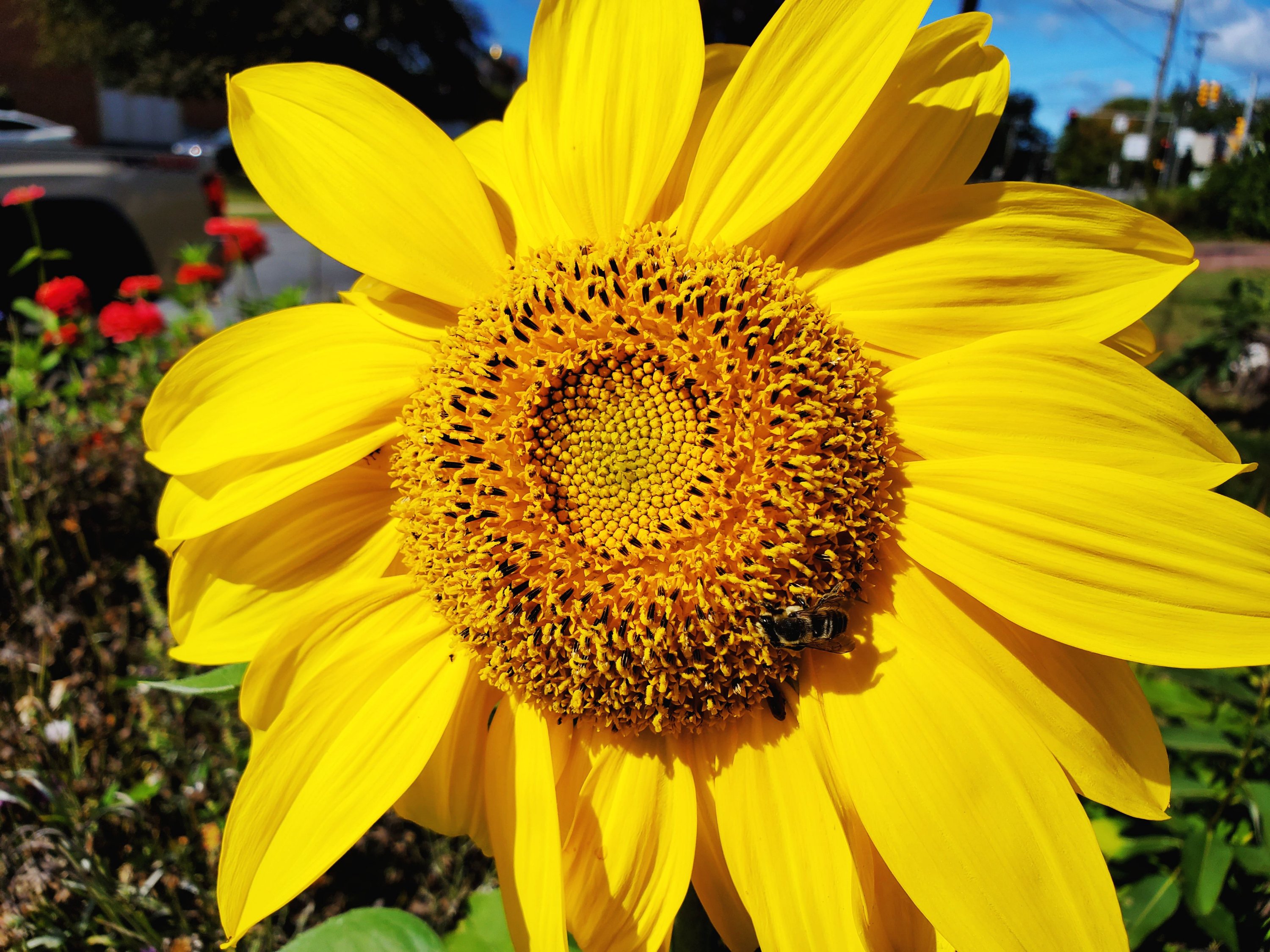 In my area (zone 5a/b), you can find native plants, but you can also find seed bombs which have a mix of milkweed and wildflowers. Butterfly bushes are fragrant and beautiful, but some towns consider them to be invasive. I cut mine back to the ground every year to keep it in check. The bees also love my catmint plant, sunflowers, cosmos, zinnias, and bachelor’s buttons. I also have several bee balm plants which are huge pollinator attractors. Many of these plants will self sow, meaning they drop their seeds and will grow again the next year. Even my herbs, which are untended and have gone to flower, attract the bees and wasps.